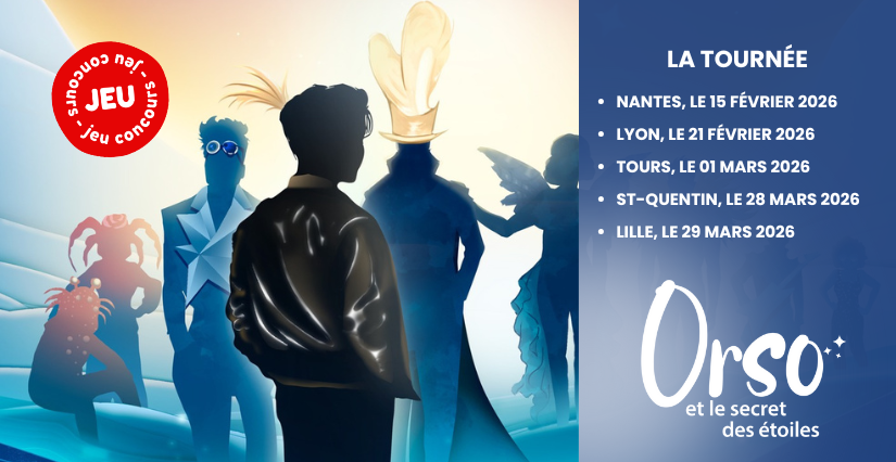 Kidiklik et Média Vision Live vous proposent de gagner vos places pour le spectacle "Orso et le Secret des Étoiles" en tournée dans toute la France ! Une comédie musicale drôle et poétique qui traite du rapport à la nuit, du temps et de la confiance en soi.